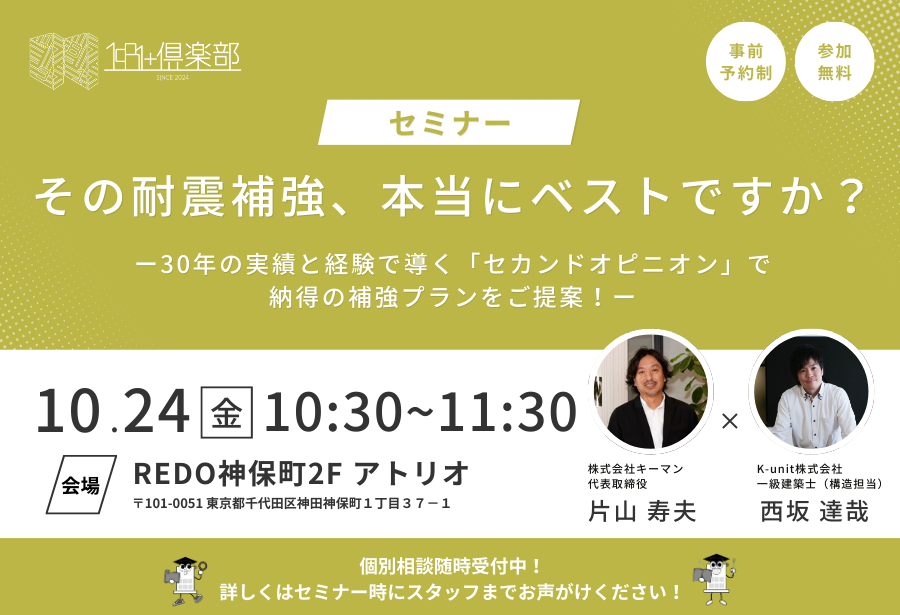 【セミナー】その耐震補強、本当にベストですか? ~30年の実績と経験で導く「セカンドオピニオン」で 納得の補強プランをご提案!~