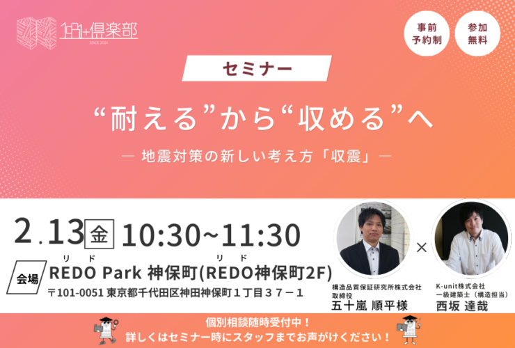 【セミナー】補強設計のプロが見る! 建物の耐震性と“見極め方” 〜外観・築年数・構造…意外なところでわかる耐震性〜